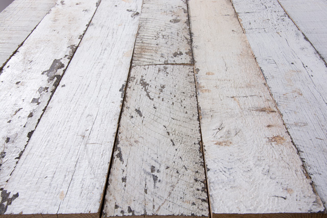 フェンスウッド ホワイトは、競走馬の為の牧場でフェンスとして使われていました。一部剥がれかけている白色の塗装が印象的で、荒々しさのなか明るさもあり、それぞれの板に異なる素顔があり、見る者を飽きさせません。
