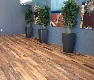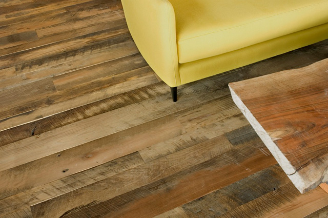 セトラーズプランク ミックスハードウッドは、色々な広葉樹を含んでいます。表面は、それぞれの板の樹種の性格を見定めて反りや凹凸を部分的に削り取り、削ることで現れる木肌と年月を経て作られるヴィンテージ感との調和が、広葉樹の持つ魅力を更に引き出しています。