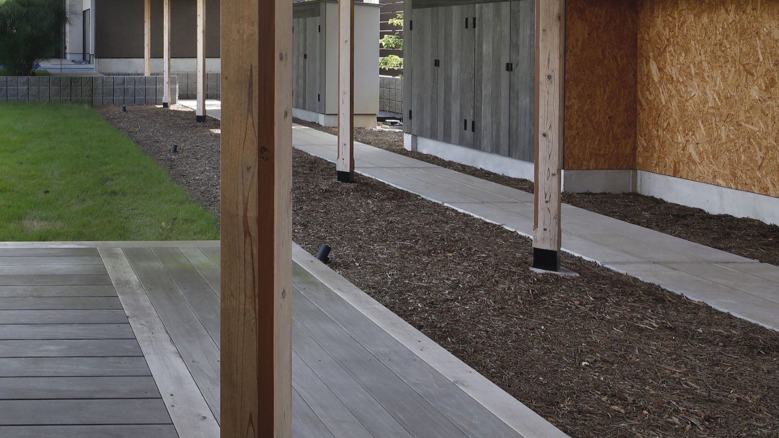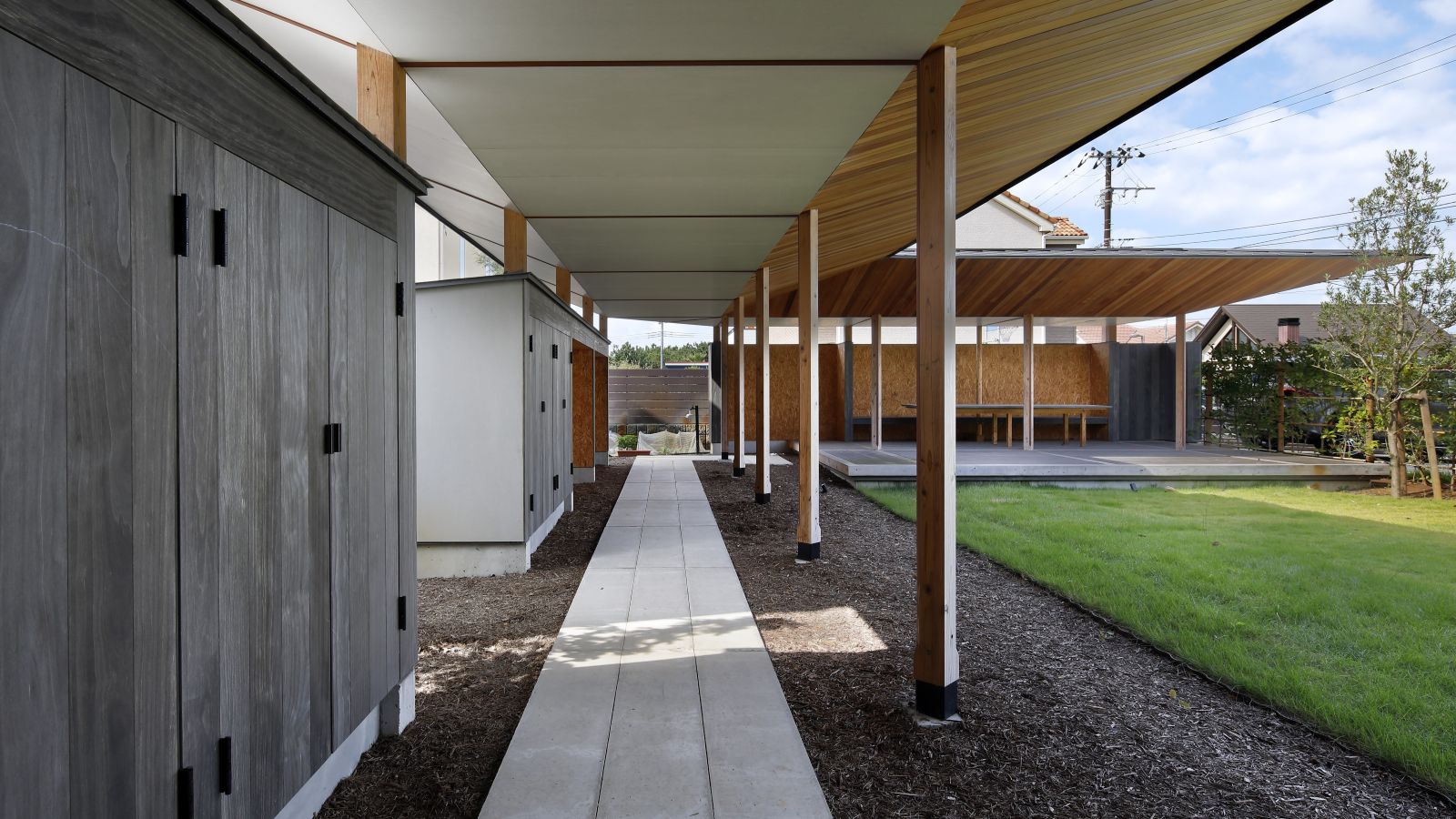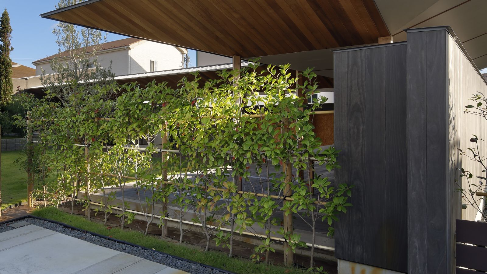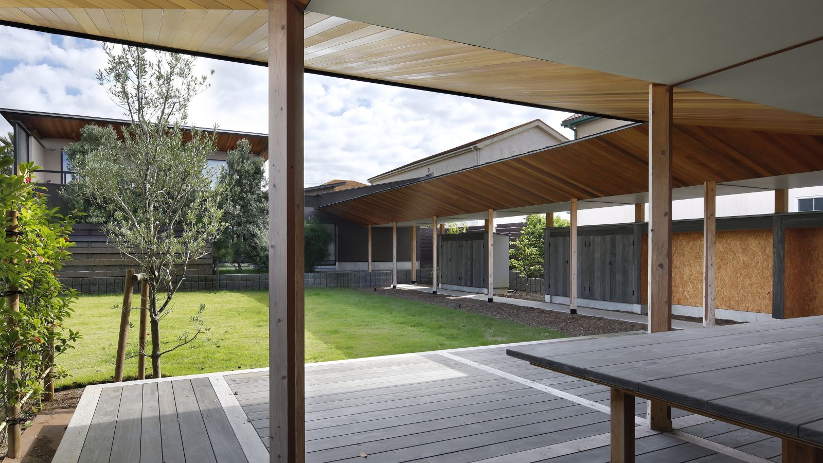 exterior エクステリア accoya アコヤ deck デッキ grey グレー 住宅「風の回廊」 建築や周囲の景観とも調和した、無駄のない上質なエクステリア。 アコヤグレーが、デッキ床板、テーブル天板、屋外収納扉、塀に アコヤグレーが、適所に使用され、モノトーンの素材が空間全体に 落ち着きのある統一感を生み出すことに貢献しています。 物件: 住宅「風の回廊」 設計: 長谷川順持・長谷川建築デザインオフィス(株) 加工: (株)ハヤシ工務店 撮影: 黒住直臣 アコヤ 使用例 デッキ アコヤ 使用例 グレー